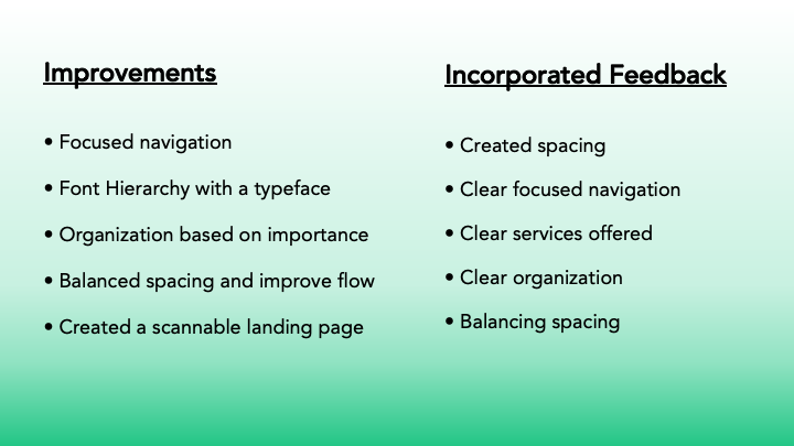 Users' feedback on the design left them confused; they felt the schedule area was in the wrong place and had too many entry fields. There were too many testimonials, and they were too far up. The "Who We Are" "What We Offer" and "Tools" sections were too far down the page.