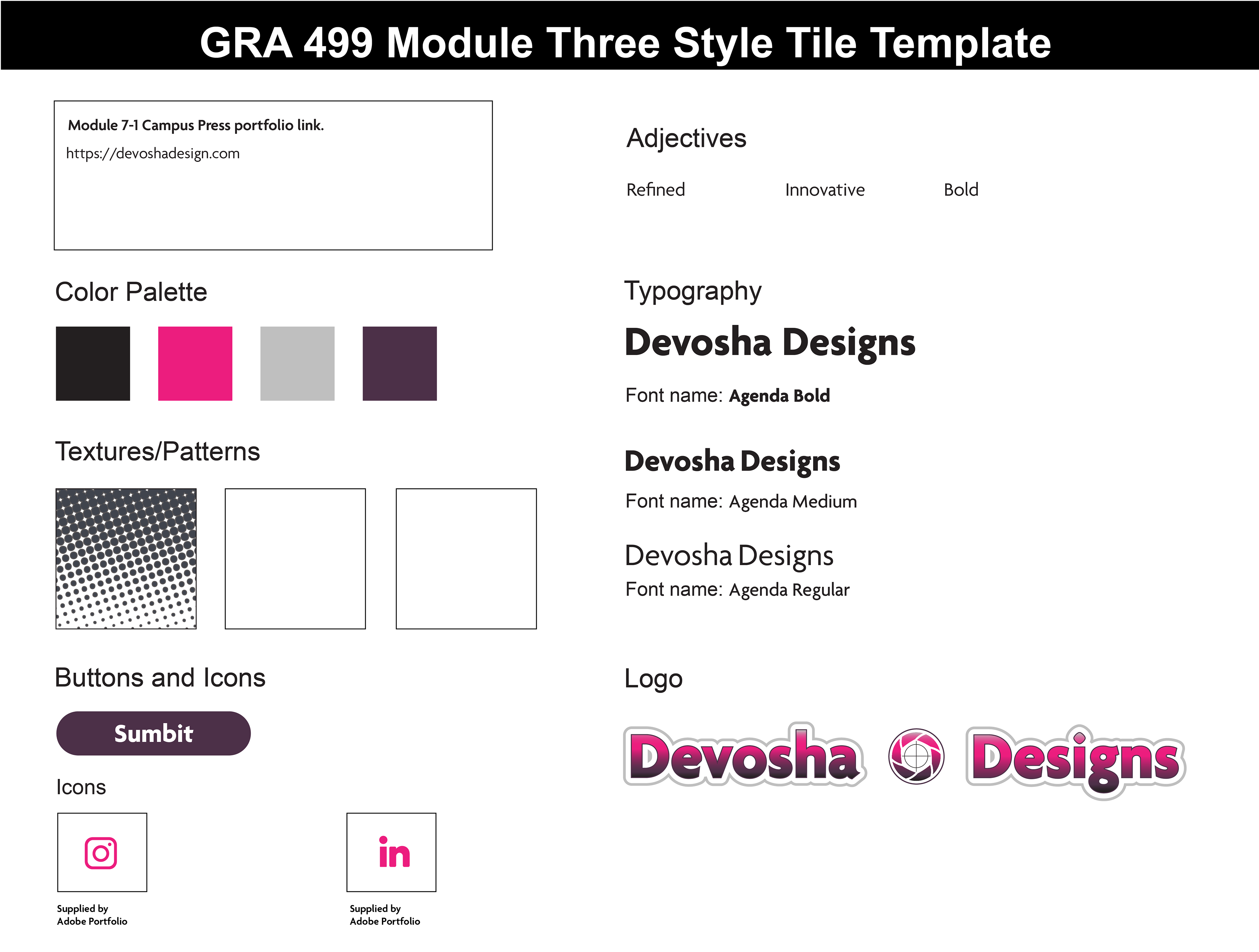 Devosha Designs is a bold, sultry, and darkly sublime design brand that thrives at the intersection of art, storytelling, and visual seduction. Brand colors will be black (mystery, depth, and sophistication), hot pink (attitude, allure, and modern edge), light gray (neutral but can be mysterious), and dark violet (creativity, imagination, and mysticism). Devosha Designs identity reflects a daring aesthetic that appeals to clients seeking something unapologetically different. The brand voice is confident, artistic, and slightly mischievous, with a personality that embodies both a bold and magnetic world.